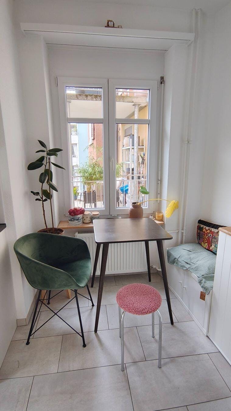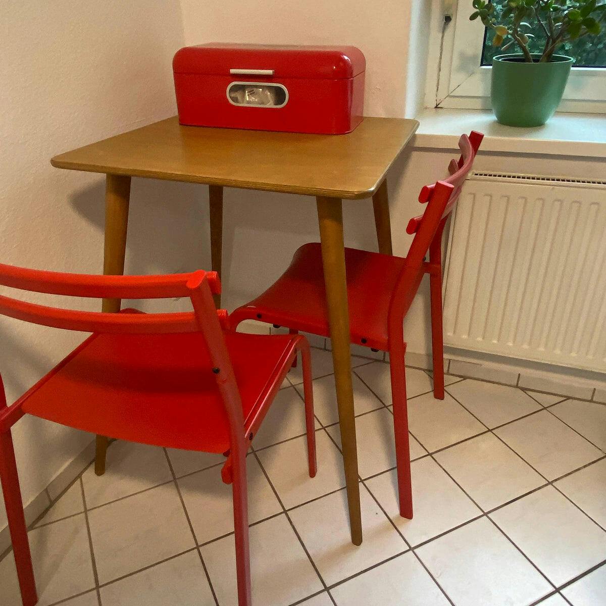 Dieser kleine Küchentisch ist quadratisch und wurde für kleine Küchen in Schweizer Wohnungen entworfen. Die kompakte Grundfläche nutzt den vorhandenen Platz effizient, ohne den Raum zu überladen.